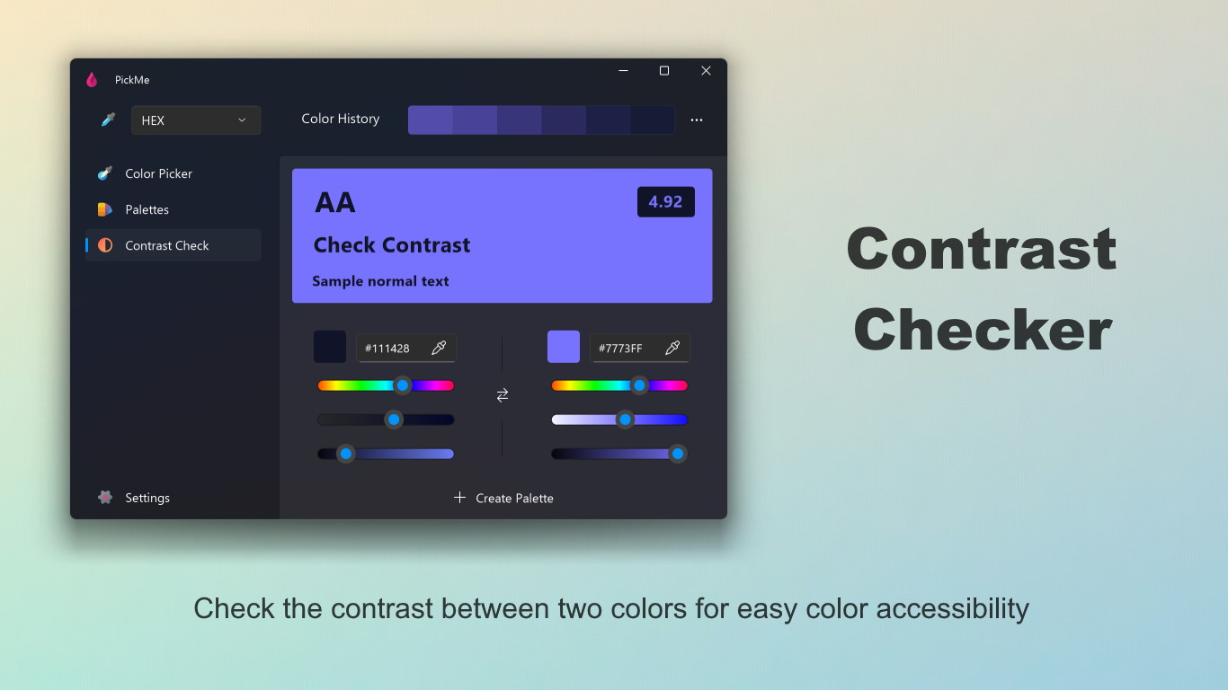 Color contrast is crucial for readability and accessibility. It helps users, especially those with visual impairments, to distinguish text from its background. Check the contrast of any two colors using PickMe.